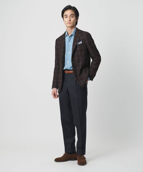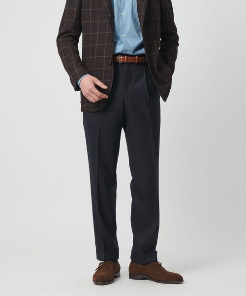 <EMINENTO>ライト サキソニー 1プリーツ スラックス