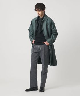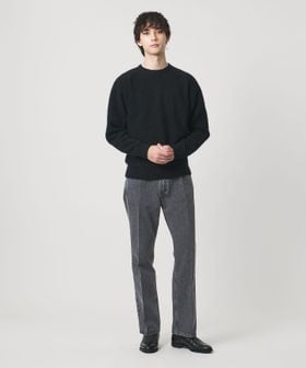 スッキリとした腰回り、膝下のストレートラインが特徴。センタークリースが入っているため、きれいめな印象も兼ね備えている一着です。