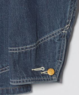 大戦期、鉄道工員用につくられた通称「LOCO JACKET」をベースに、<Scye>独自のパターンワークを取り入れたワークジャケット。袖には「Pivot Sleeve(ピヴォットスリーブ)」を採用し、腕まわりの可動域を広げることで、ストレスフリーな着用感と美しいシルエットを実現。アイコニックなふくらみのある茄型ポケットや、2本針の丈夫な縫製といったディテールはそのままに、トップボタンにロングL刻印入りのタックボタンを採用し、よりクラシックな表情へアップデートを加えました。