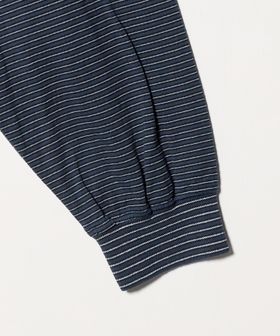 コットンとポリエステルを掛け合わせ、それぞれの素材にあわせた染料を用いることで、奥行きのあるボーダー柄に仕上げています。