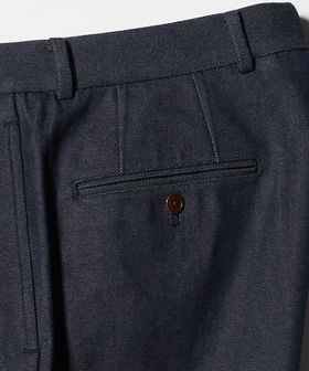 日本人の体型に最適なサイジングで、穿き心地の良さを兼ね備えた商品作りがコンセプトで、クラシックやヴィンテージの生地を使用しつつ、今の時代に合ったシルエットやディテールにもこだわり、ドレススラックスにも負けない仕様を採用しています。