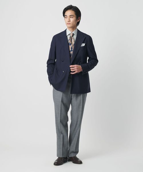 重厚感を抑えた軽快な表情の4ボタンダブルブレストブレザー。