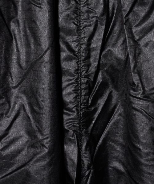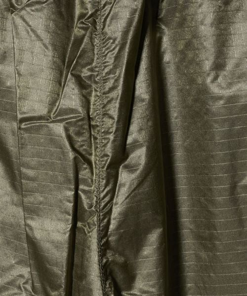 ウエストはサイズ調節のしやすいスピンドル仕様。裾にはドローコードを配置し、フィット感やシルエットの調節が可能です。