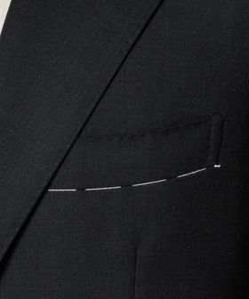 ジャケットは、従来のものよりも程よいゆとりのある肩幅、ラペルの幅もやや広げオーセンティックな印象に。