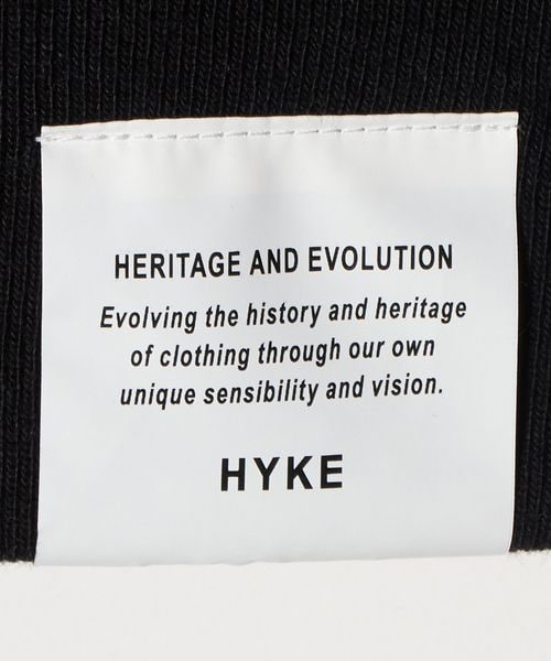 2013年秋冬コレクションよりブランド名を「HYKE」に改名し、「HELITAGE AND EVOLUTION」をコンセプトに服飾の歴史や遺産を自らの感性を独自に進化させるコレクションは多くの方から支持を受けています。