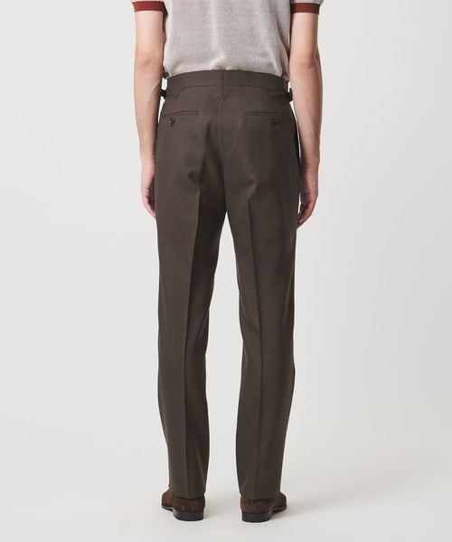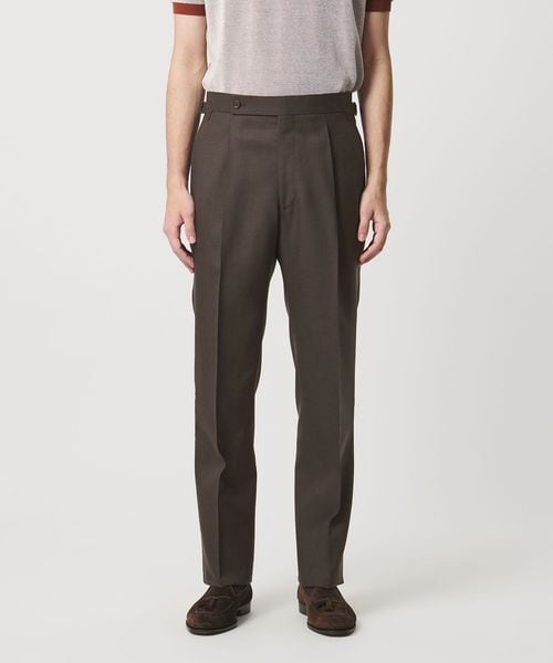 股上がやや深く、ワンインプリーツが入ったスラックス。