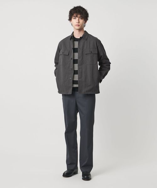 ミリタリーのCPOシャツを現代風にモダナイズし、大き目の胸ポケットをデザインアクセントにしています。