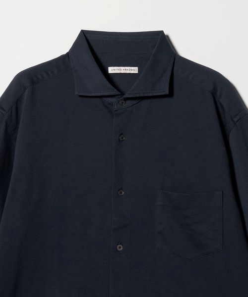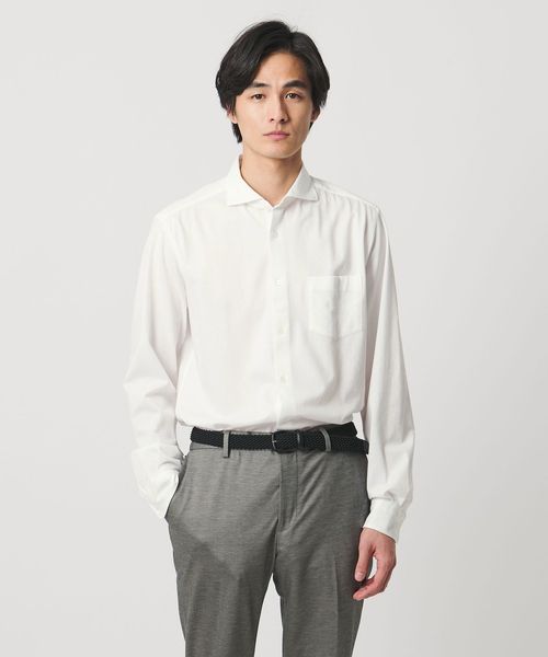 カットソー素材のカッタウェイカラーシャツ。
