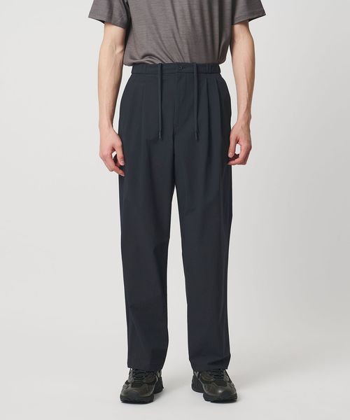 腰廻りにボリュームのあるシルエットが快適さをもたらす、撥水機能をもったイージーパンツ。