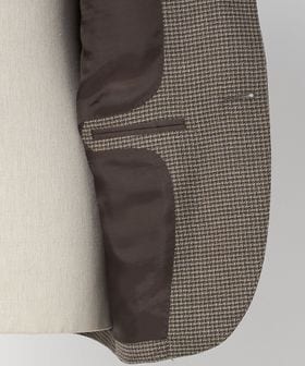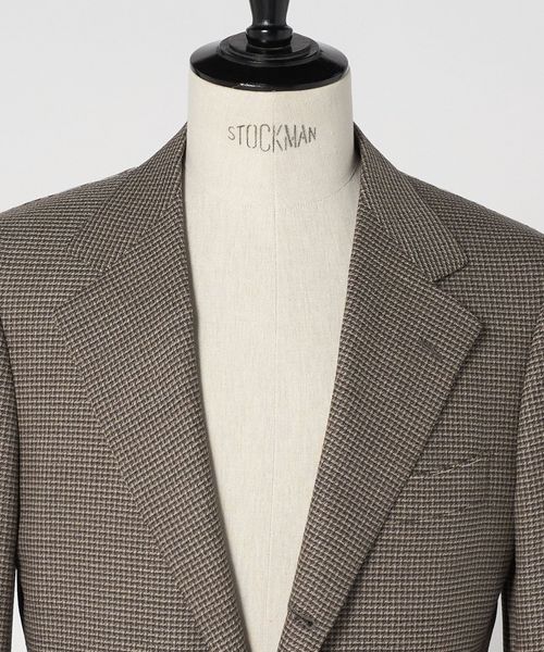 「CARLO BARBERA」社製のホップサックに、深みがありつつも華美過ぎないブラウンの配色のバスケット・チェックを配した生地を使用しています。