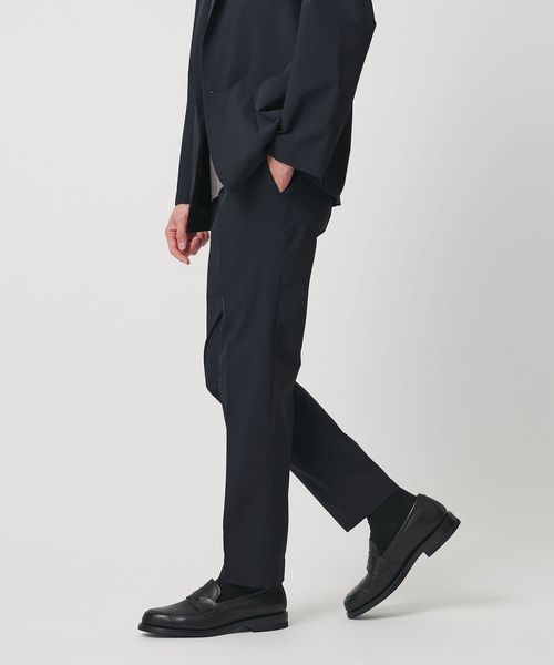 サイドシャーリング仕様とストレッチ素材によって快適な穿き心地の美脚スラックスです。