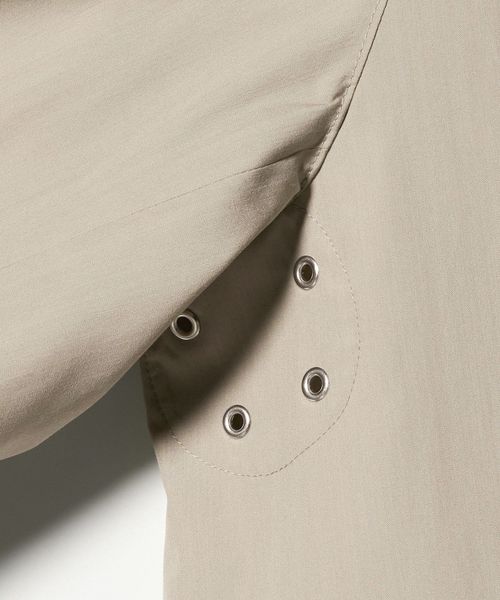 ビジネスシーンでも活用しやすい小ぶりな襟とラグランスリーブが特徴です。