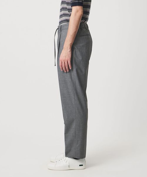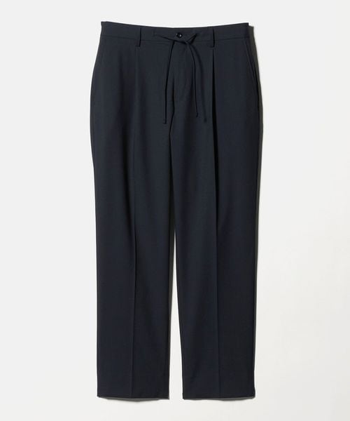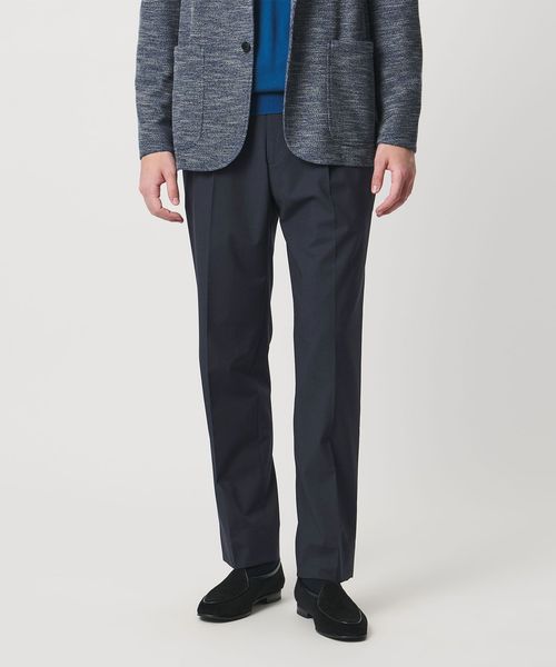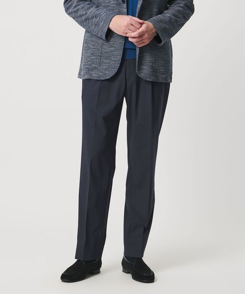 1プリーツの仕様で、適度にゆとりのある腰廻りからゆるやかにテーパードしたシルエットが特徴。