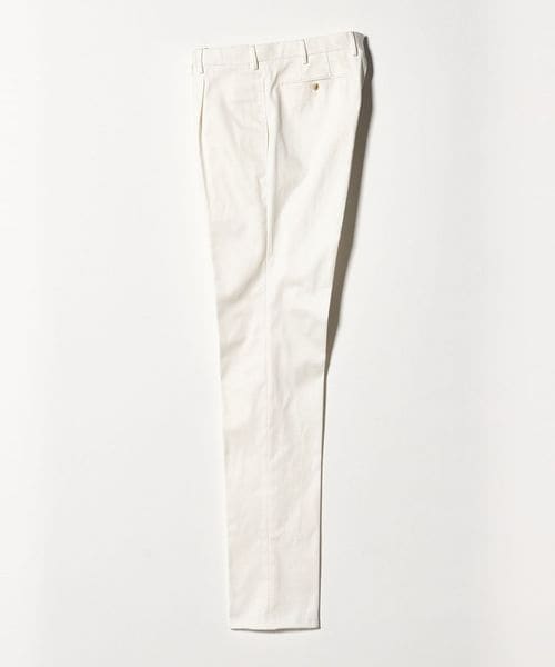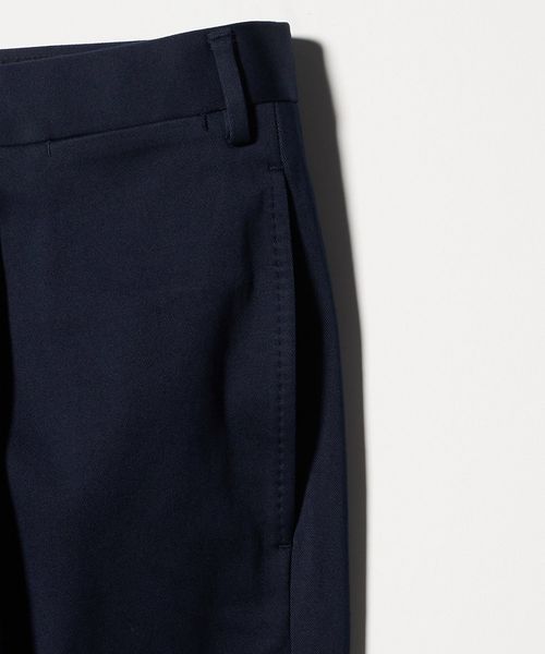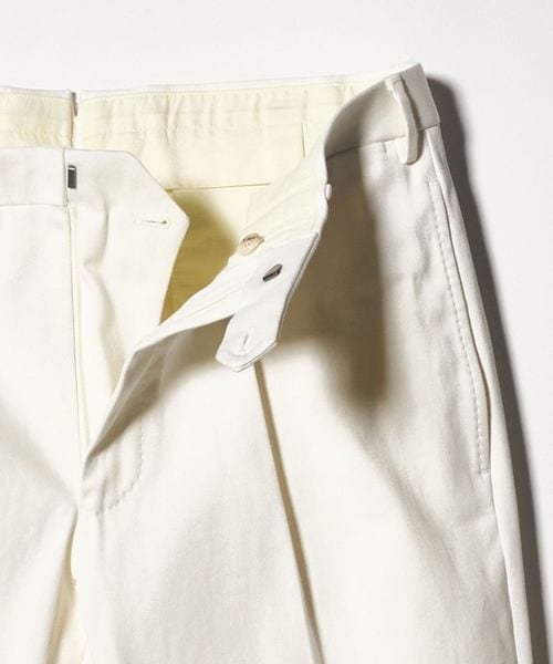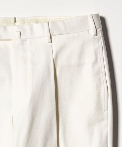 腰まわりにゆとりを持たせたワンプリーツ仕様で、快適な穿き心地を叶えながらも、裾に向かってすっきりと細くなるテーパードシルエットが、現代的で洗練された印象を与えます。