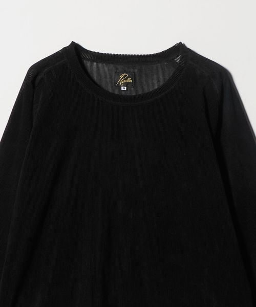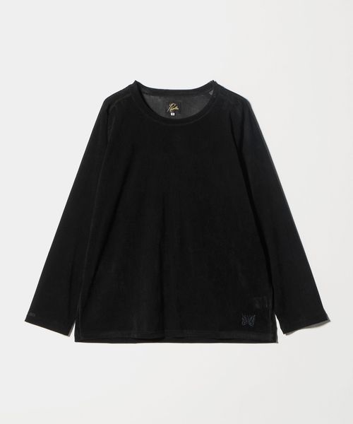 <NEEDLES> L/S U―Neck Tee Flocked Stripe /フロックド ストライプ ロングスリーブ Tシャツ