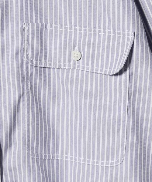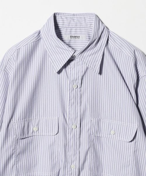 <District> ストライプ ダブル ポケット レギュラーカラー シャツ