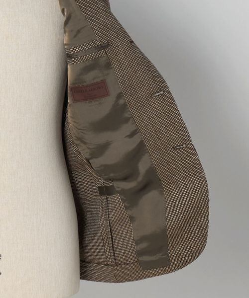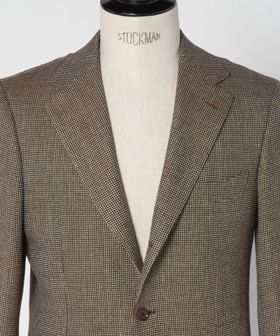 段返り3ツ釦のややワイドなラペルデザイン、身体に自然と馴染むボディーのシェイプと柔らかいショルダーラインが特徴です。