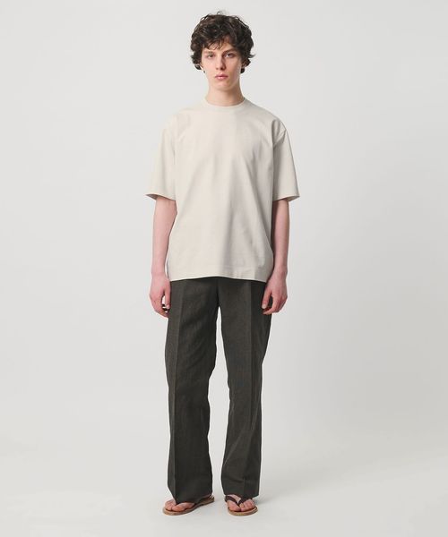 シンプルなデザインだからこそ、スラックスやデニム、ショーツなど幅広いボトムスと好相性です。
