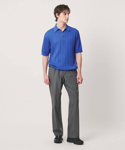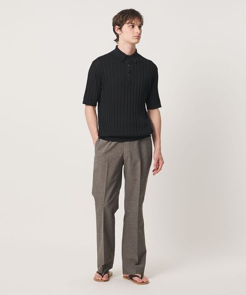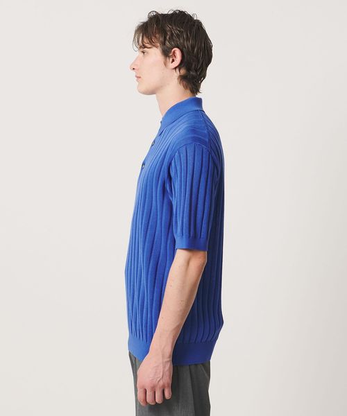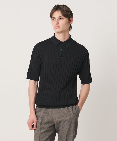 定番のニットポロシャツを、編地変化によって新鮮で時代性のあるアイテムへとアップデートさせています。