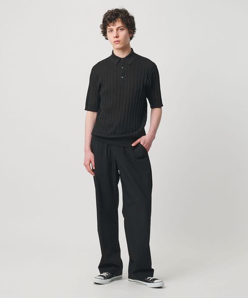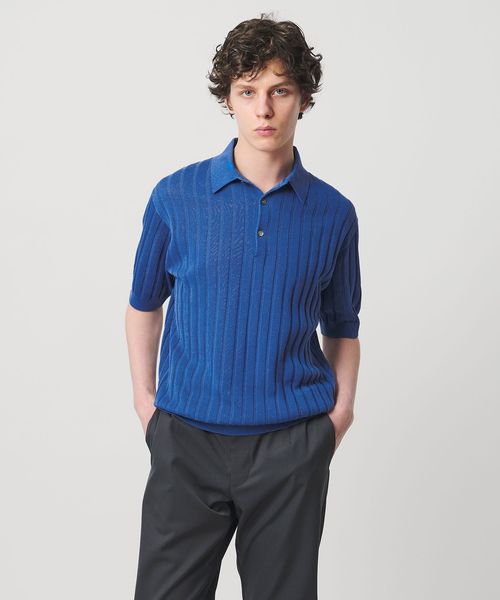 定番のニットポロシャツを、編地変化によって新鮮で時代性のあるアイテムへとアップデートさせています。