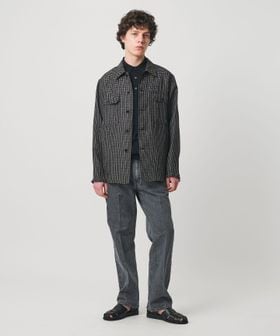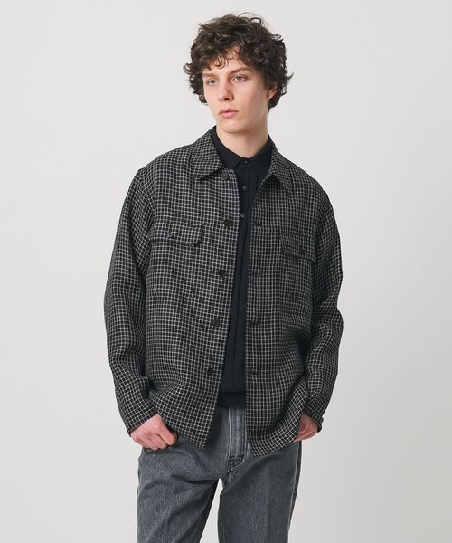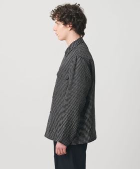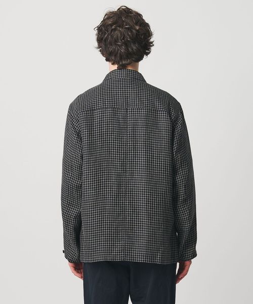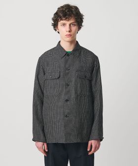 リネン/ナイロン チェック ユーティリティシャツ