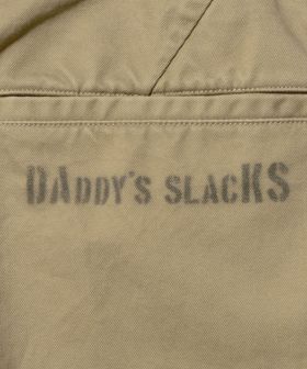ヒップポケット下に<DAKS>のブランド名の由来となった「DADDY’S SLAKS」のステンシル文字をプリントしたチノショーツ。こなれたヴィンテージライクな表情が魅力です。