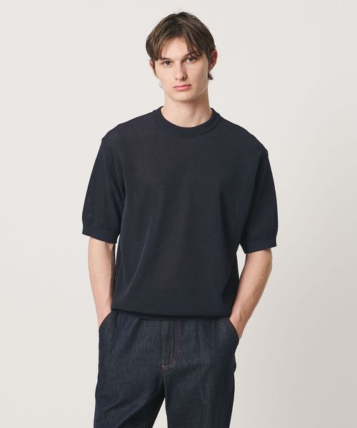 <UNITED ARROWS>定番のドライでシャリ感のある素材を生かしたクルーネックの半袖ニットです。