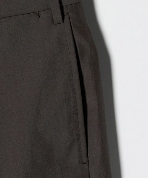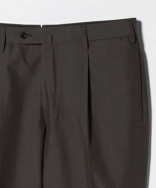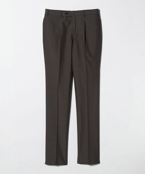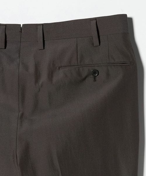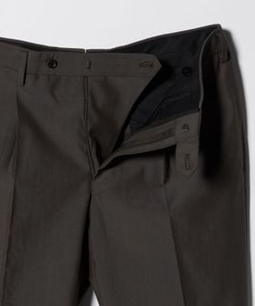 ワンプリーツ仕様のモダンテーパードスラックスです。ほどよいゆとりを持ちながらもヒップからワタリをコンパクトにまとめ、自然にテーパードさせることでモダンなストレートニュアンスを表現しています。