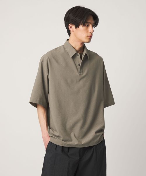 襟付きのデザインのため、Tシャツよりもきちんと感があり、セットアップでも単品でも使いやすい一着です。