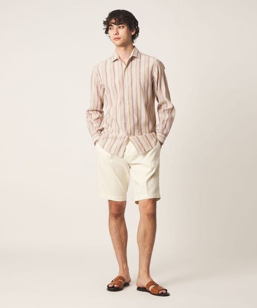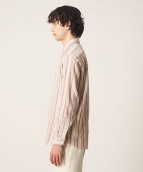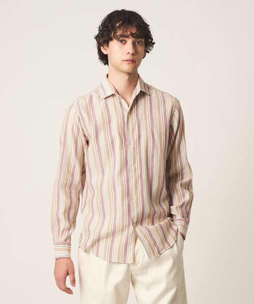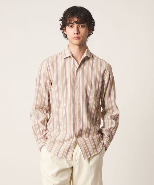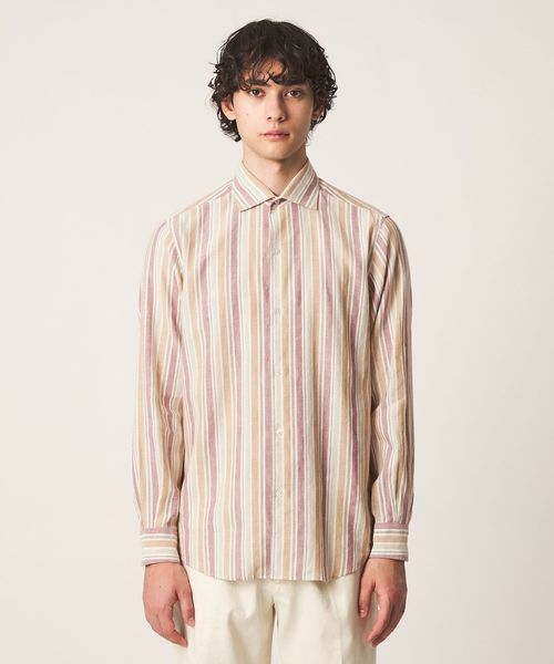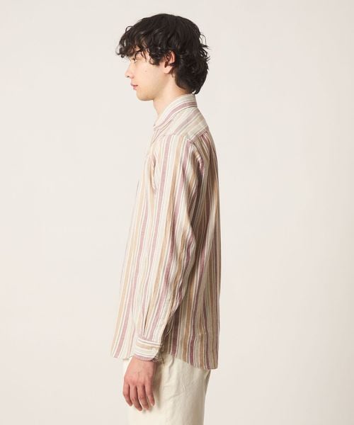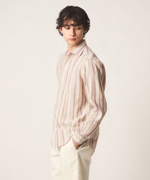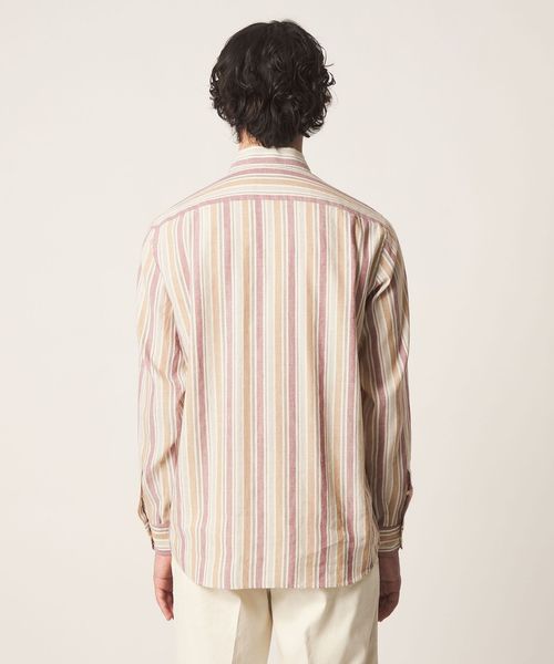 リゾートムードのあるストライプ柄と、褪せたカラートーンが印象的なイタリアンカラーシャツです。