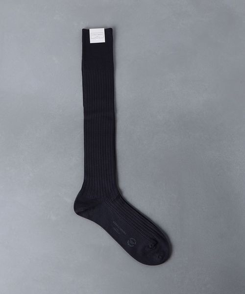 特有の縦ラインの凹凸がシャープさを加えるリブ素材のロングホーズ。