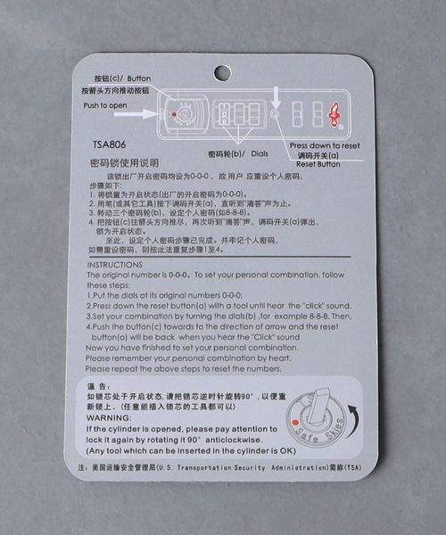 ・世界基準のダイヤル方式のTSAロック(運輸保安庁認定)を標準採用