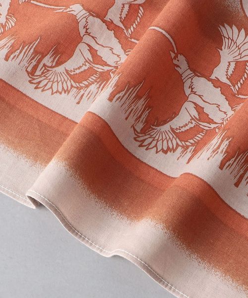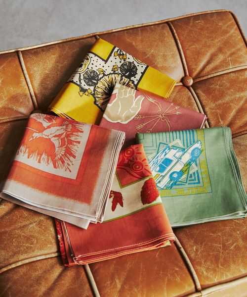 大きさはスカーフとしても使用可能な大判サイズでヒップポケットからちらっと覗かせたり、四角を結んでエコバッグとしての使用など幅広い方法でお使いいただけます。