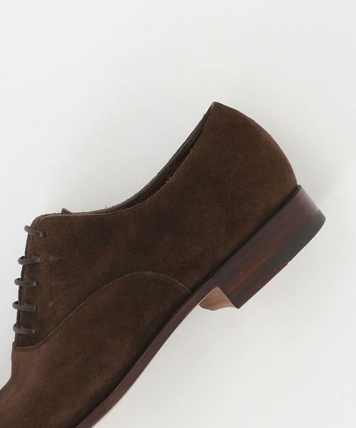 落ち着いたカラーと微起毛感ある素材を使用したキャップトゥシューズ。