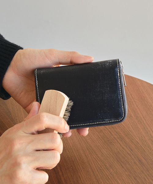 こちらは柔らかい布で磨くか、ブラッシングして頂くことで革の中に戻ります。オンライン店舗でご購入頂いた商品は、本物のブライドルレザーの証であるブルームを取らずに出荷させて頂きますのであらかじめご了承下さい。