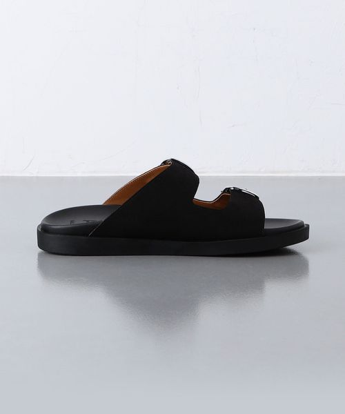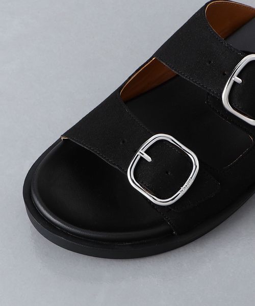 シンプルなデザインに大きめのメタルバックルが印象的なサンダル。