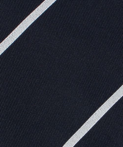 ネイビーベースのカラーリングに細いピッチ幅のストライプが相まって、エレガントな雰囲気を演出するネクタイ。