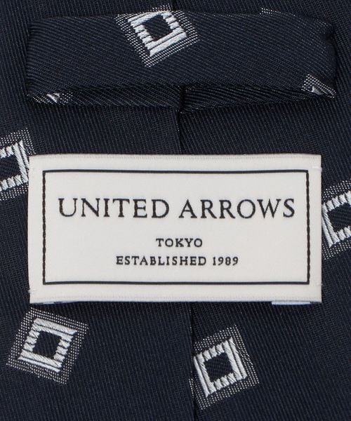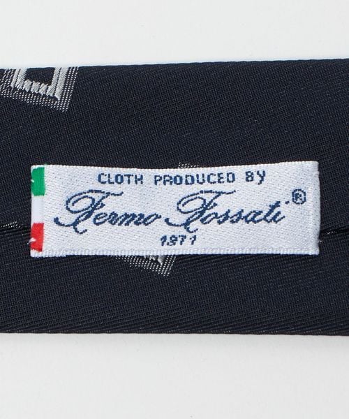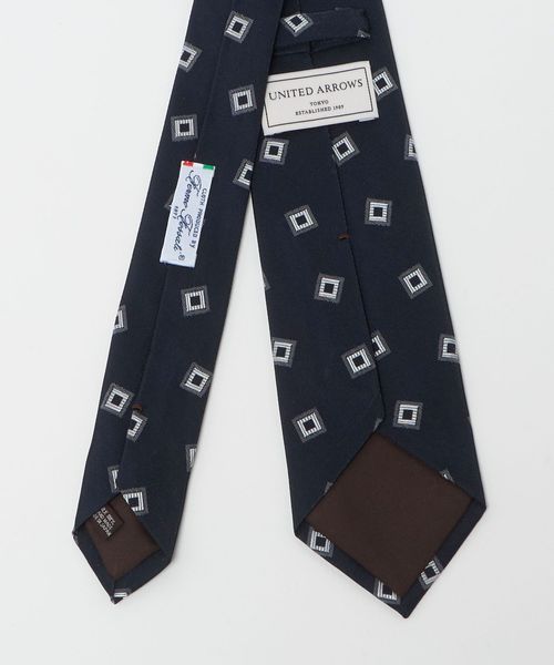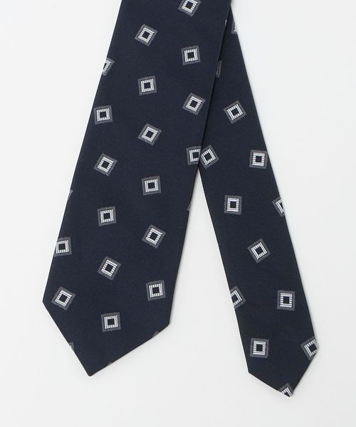 幾何学的なモチーフが目を引く小紋柄のネクタイ。