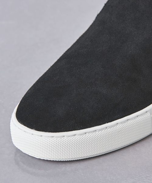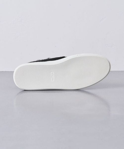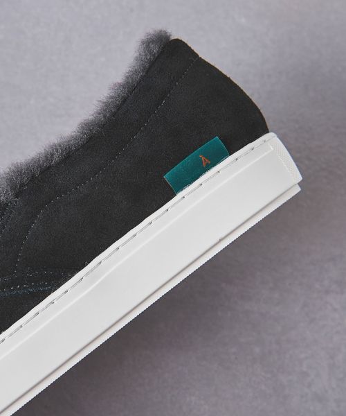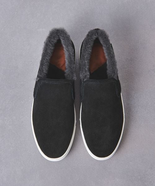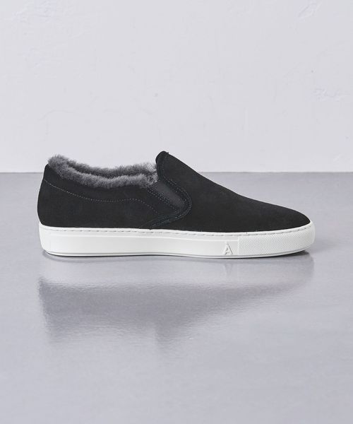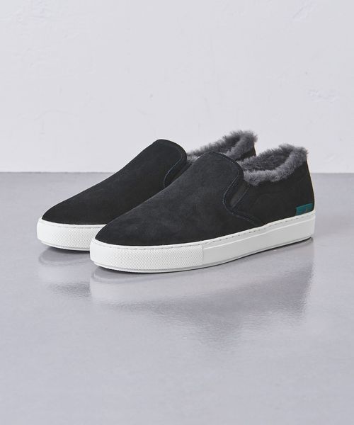 ライニング&インソール、履き口にムートンをあしらったスリッポンシューズです。