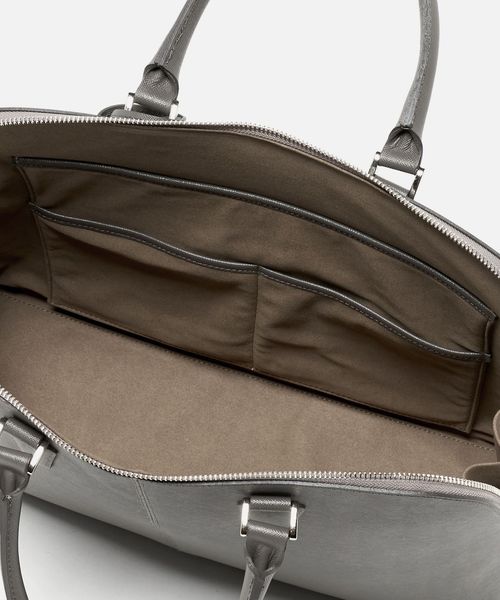 柔らかい表情のラウンドシルエットに型押しの表情がスマートなビジネススタイルを演出する1品