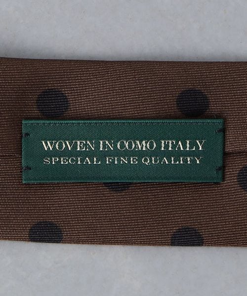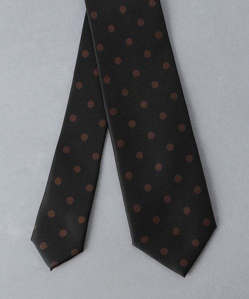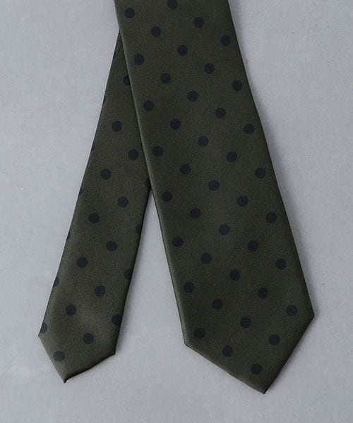 クラシカルなドット柄をアーシーなカラーリングとプリントパターンで起こすことで、モダンな印象をプラスしたネクタイ。
