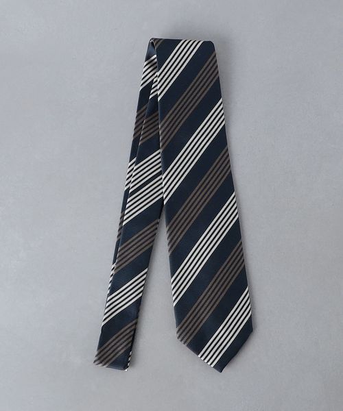 異なる配色で組み合わさったマルチカラーストライプ柄のレジメンタルネクタイ。