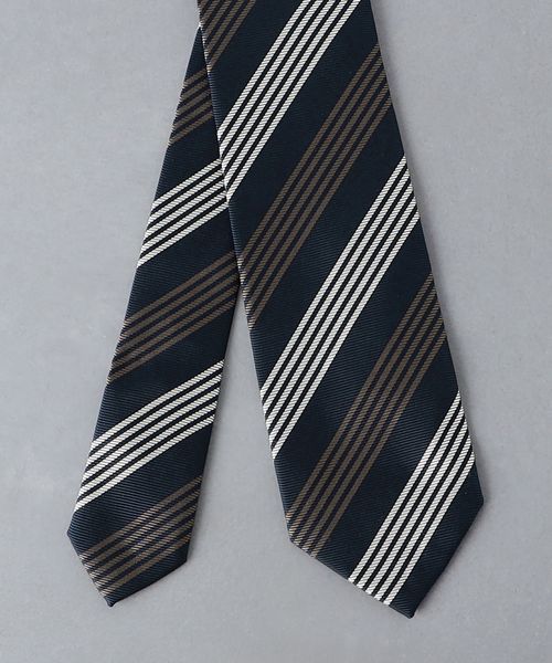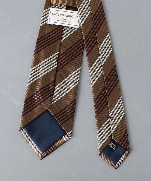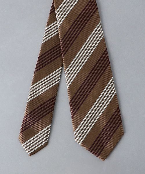 異なる配色で組み合わさったマルチカラーストライプ柄のレジメンタルネクタイ。