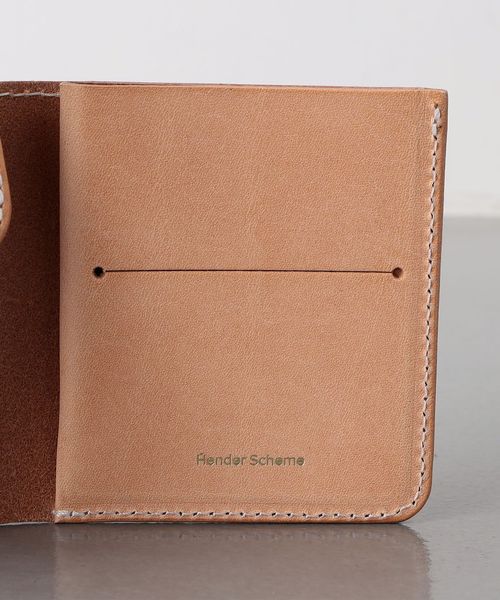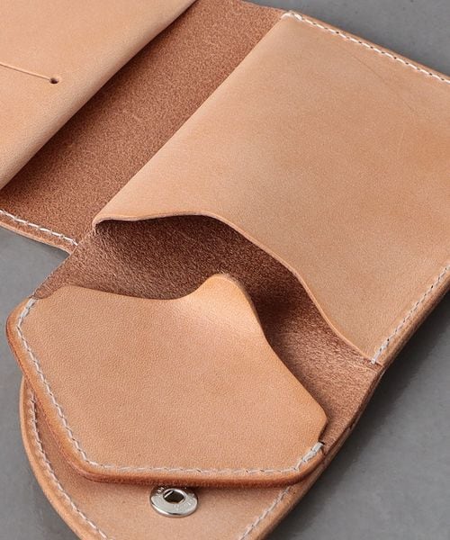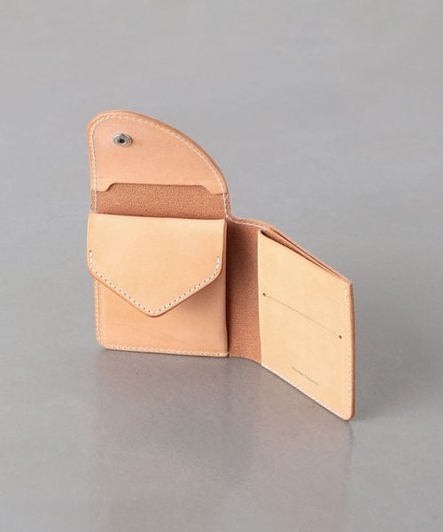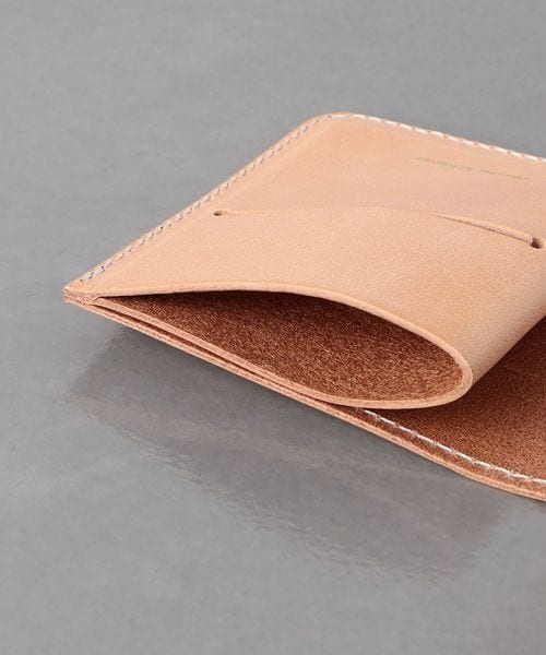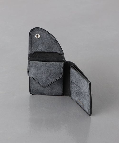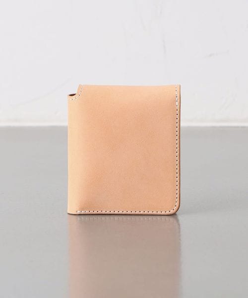 ラウンドしたフラップが特徴的な二つ折りのワンハンドウォレット。