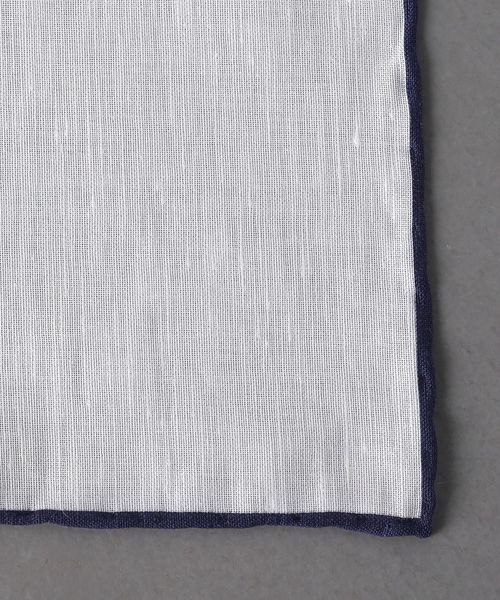 シンプルながらも縁のカラーリングがアクセントとなるポケットチーフ。