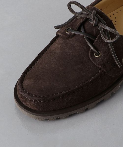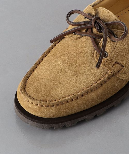 デッキシューズベースの軽さのあるデザインながら、スエードの素材感とややボリュームのあるシルエットはどんなボトムスとも相性が良くオールシーズン活躍いたします。
