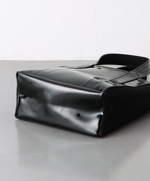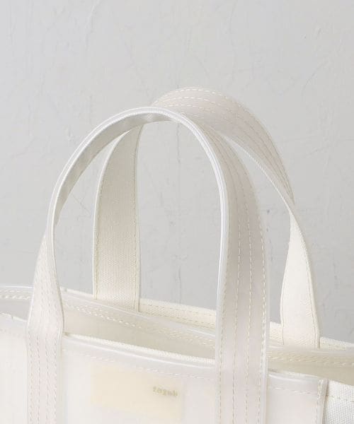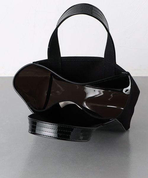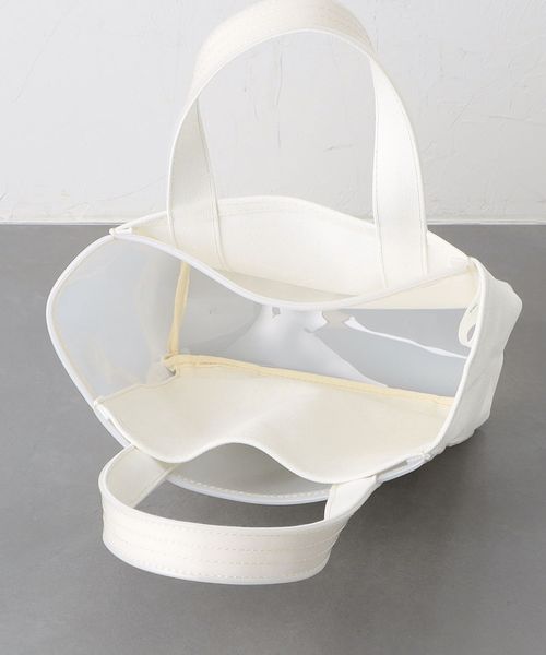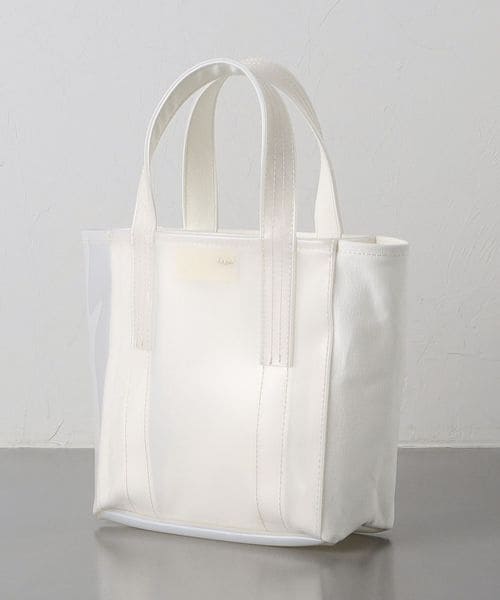 クリアPVCとコットンキャンバスを互い違いに縫い合わせたデザインが特徴的なトートバッグ。