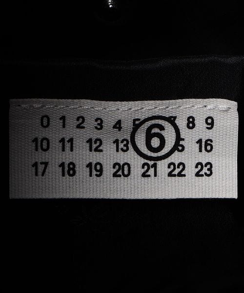 ガーメントやアクセサリーの背面には・白いシングルステッチでエムエム6のラベルが縫い付けられています。