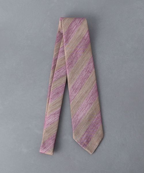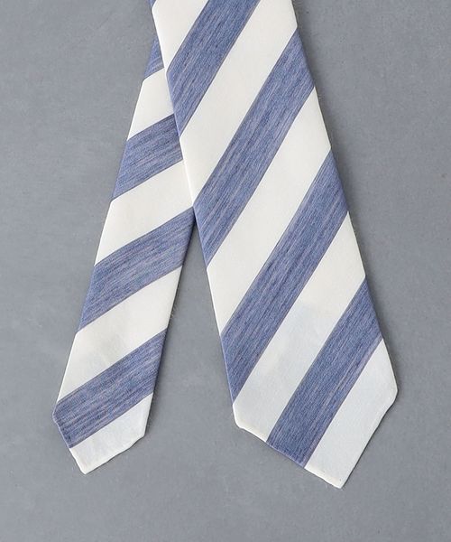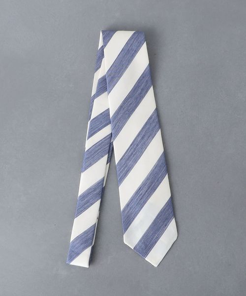 かすれたストライプ柄が春夏らしい清涼感と爽やかな雰囲気をプラスするレジメンタルストライプネクタイ。
