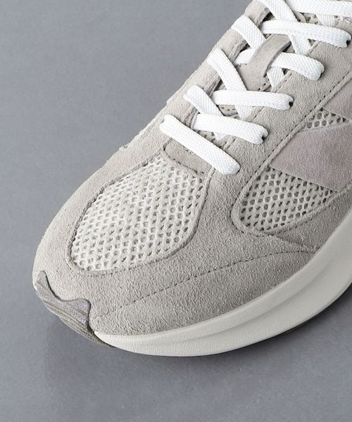 ヌバックとメッシュのコンビネーションアッパーをブランドのアイコニックカラーのグレーカラーで彩ります。